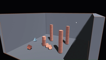 With that, I could create an arena for the simulation: a simple floor and three walls with static colliders.